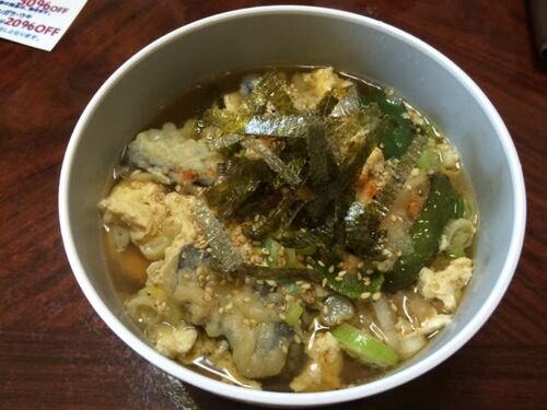 今日の隠岐の島はすごい風で予定していた釣行は中止 仕方なく家でのんびりしてます。 お昼は天婦羅卵うどん