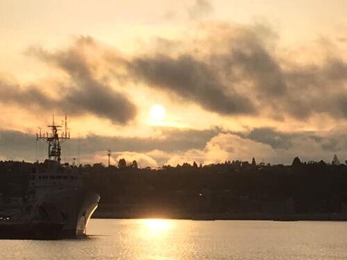 今日の日中降っていた雨も夕方には上がって、塩釜港も綺麗な夕焼けでした。 田舎の港町の情緒っていいですね