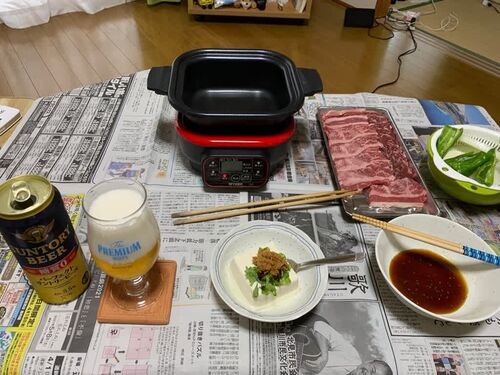 やっと花金そんな花金の夜は1人焼肉以前、半額で買って冷凍しておいた牛さんを冷蔵庫で解凍しておいたのだ国産の牛さんは半額でないとなかなか手が出ない野菜も摂ろう肉が焼けるまでの前座は冷奴に山わさびと大葉(これで飲みたかったんだよね)ジュージ…