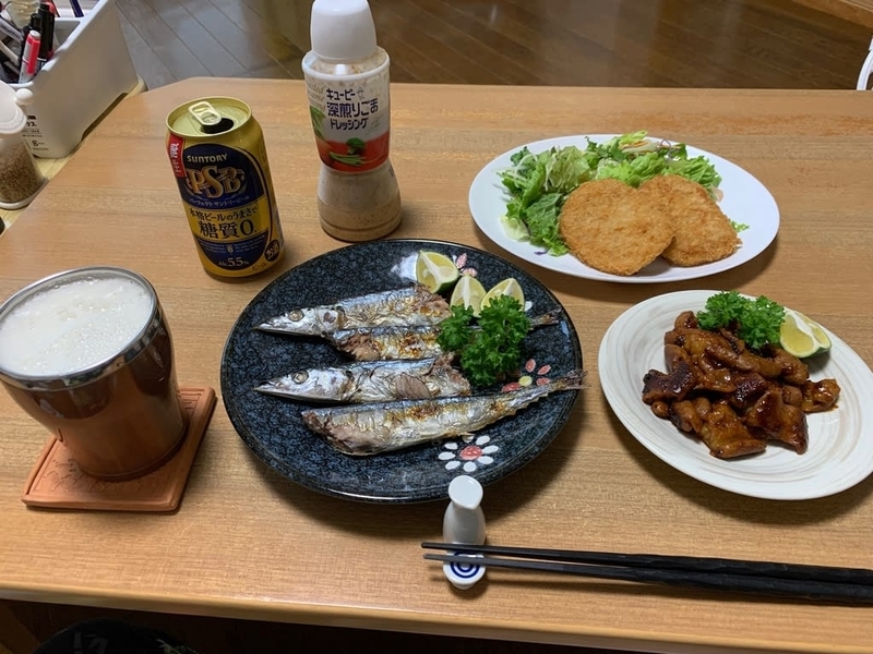 昨日と同様秋刀魚が1尾127円(税込み)で売っていたので、今宵は秋刀魚で飲ることに