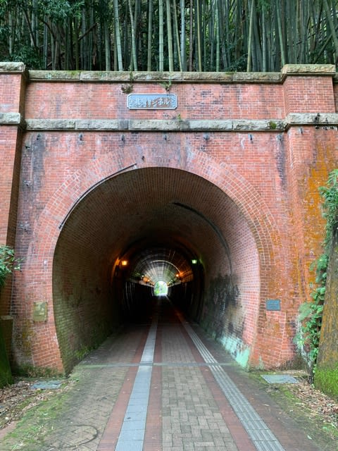ここは、昔、鉄道の線路が通っていたけど、今は自転車・歩行者専用道路になっているトンネル